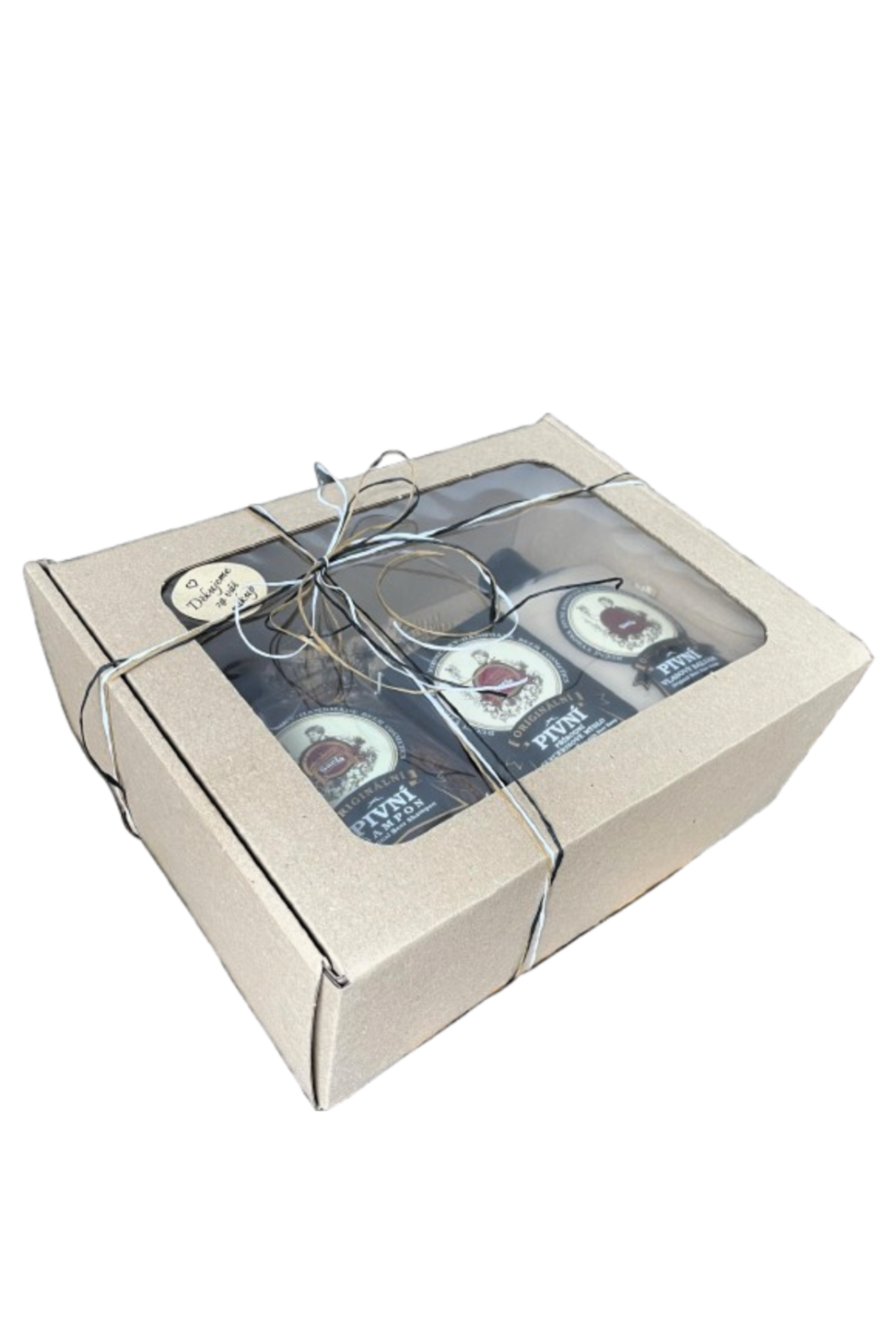 Rozměr krabice 250 × 200 × 100 mm je vhodný pro kombinaci více menších produktů. Ideální volba, pokud chcete hotový dárek bez dalšího řešení.